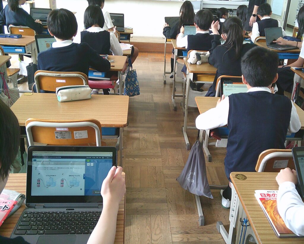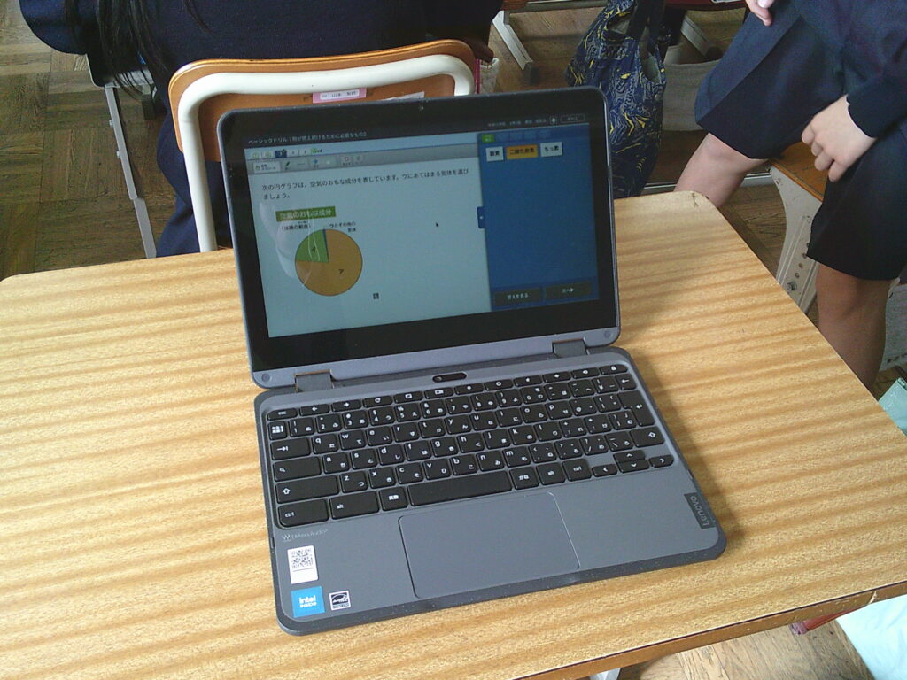 本日の朝学習で、本年度初めてクロームブック(学習用PCタブレット)を活用したAIドリル ドリルパークに取り組む学習(通称 ドリパタイム)を開始しました。