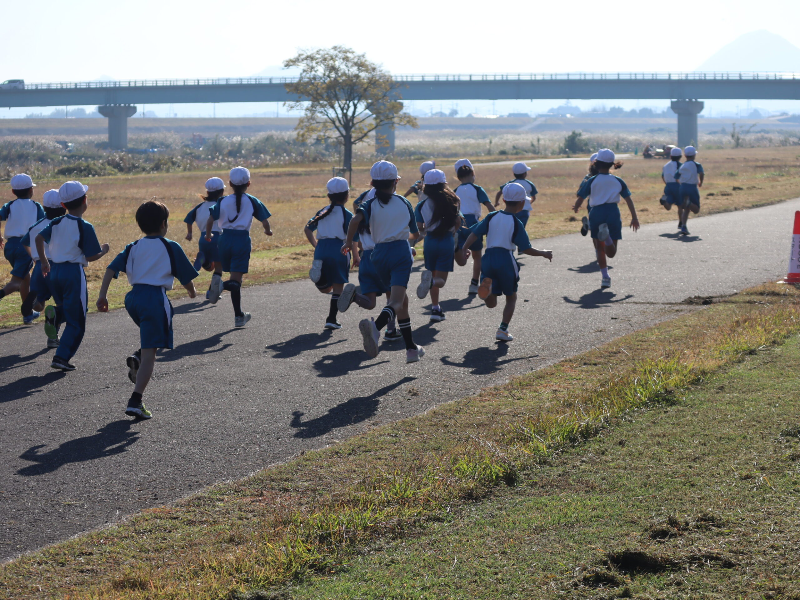 それぞれが、自分の選んだ距離を自分のペースで走りぬきます。2年生以上の子どもたちは、「昨年より順位を上げたい。」「タイムを伸ばす!」「長い距離を挑戦する。」など目標をもって挑戦しています。