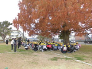 今日は、月に1度のメタセコイア下校です。午前中は暖かった気候も、午後からは風も強くなり、雪を思わせるメタセコイアの落ち葉が舞い散る中でのメタセコイア下校となりました。