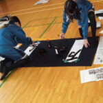 冬休みの宿題にもある「書初め」の毛筆の練習として、県書道協会の顧問でもある今井みつ子先生に来ていただき、画仙紙の毛筆による書初めの指導をしていただきました。体育館の広い場所を使い、みんなでのびのびと習字に取り組みました。おともだちの作品も鑑賞し、自分の工夫点や改善点を振り返り1枚1枚、丁寧に書いていきます。ここで学んだことを生かし、お正月には宿題としての書初めに、家庭で挑戦します。