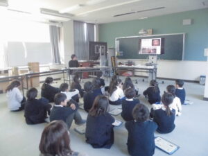 4年生では、市内の佐川美術館から学芸員の方に来校いただき、美術作品の鑑賞会と砂絵制作の体験をしました。佐川美術館に展示されている作品を画面で見せていただきながら、作者の事や作品の特徴などを教えていただきました。また、美術作品を鑑賞するときのポイントなども紹介していただきました。機会があれば、直接佐川美術館に行って、鑑賞できると良いと思います。