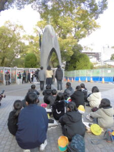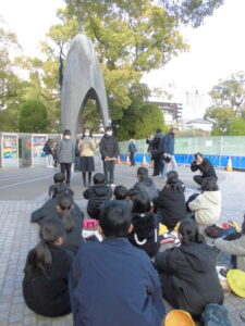 ガイドツアーを終え、ボランティアさんにお礼を伝えた後、自分たちの平和への思いと願いを明らかにし、決意を確かなものにするための「平和セレモニー」を行いました。