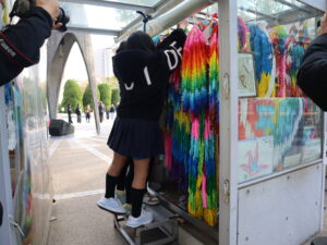 自分たちで考えた平和宣言を周囲の観光客の皆さんにも聞いていただくかのように、声高らかに自信をもって宣言する姿は大変頼もしく素晴らしいものでした。学校から持参した千羽鶴を献鶴し、さらに恒久平和維持への思いを高めました。