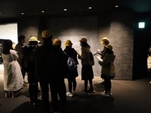 資料館では、一つ一つの展示物や写真、掲示されている説明、亡くなられた方の最後の言葉などを、じっくりと時間をかけて見学したり読み込んだりしていました。人が多くて自分たちのペースで進めないところもありましたが、有意義な学びの時間になったと思います。(それでも平日なので、人は少ないほうだということでした。)